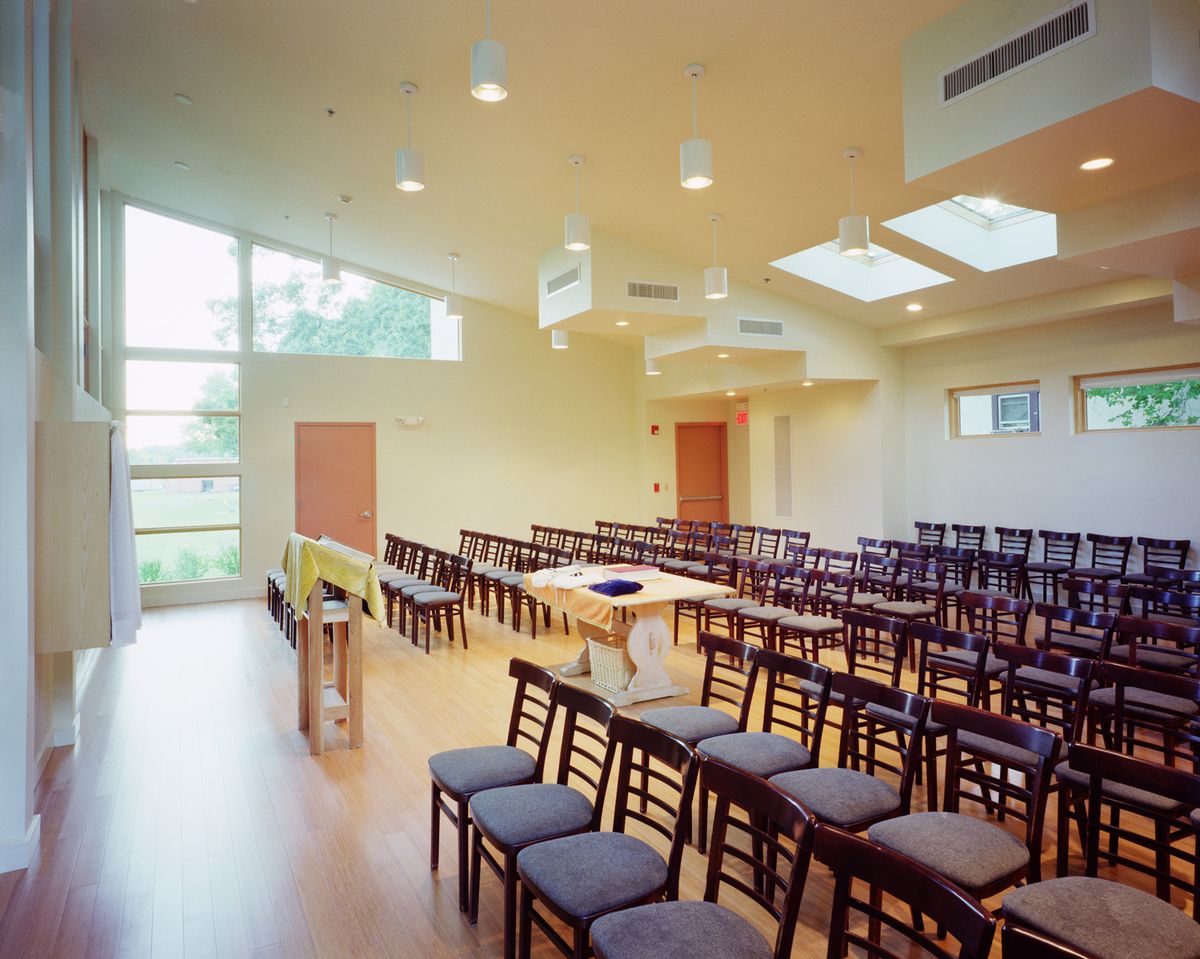 This small neighborhood synagogue was designed for a congregation of 100 persons and is located on the fringe of a residential neighborhood.